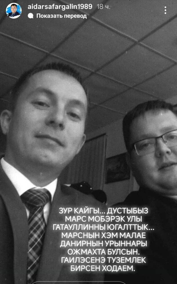 Кызганычка, коточкыч юл һәлакәте баласының да гомерен алып киткән.«Зур кайгы. Дустыбыз Марс Мөбарәк улы Гатауллинны югалттык. Марсның һәм аның улы Данирның урыннары оҗмахта булсын. Гаиләсенә түземлек бирсен Ходаем», – дип язды Айдар.