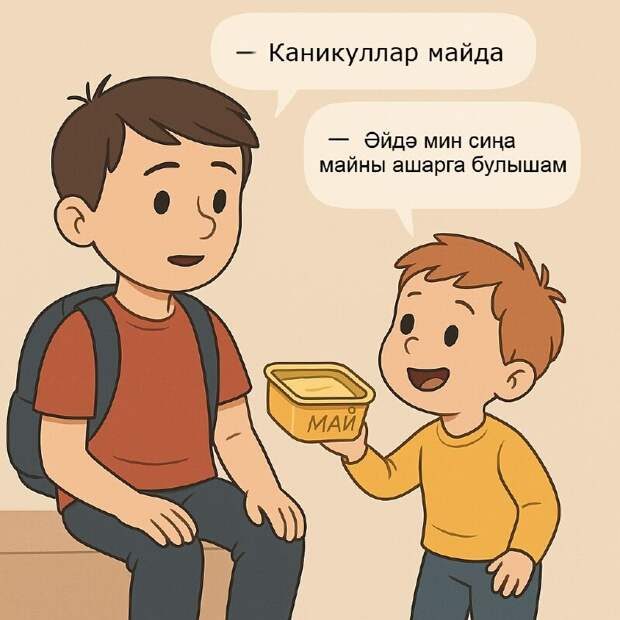 – Ммм... (әни кеше ничегрәк җавап бирергә дип аптырап тора).