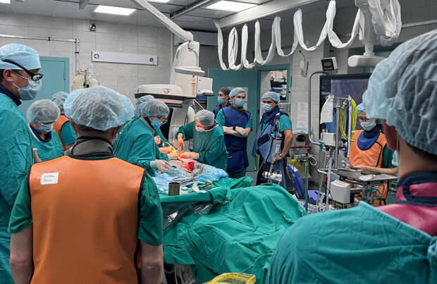 «Әгәр без пациентканы югалта башласак, йөрәк-кан тамырлары хирурглары, бик зур дозада нурланыш кулланып, операциягә керешергә тиешләр иде. Шуңа күрә якынча 50 кешедән торган табиблар бригадасы кургаш алъяпкычлар киде», – дип аңлаттылар РКБның матбугат хезмәтендә.
