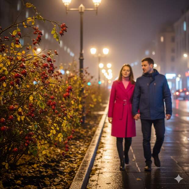 Шәһәр өстенә яңгыр исе таралган, җил агач яфракларын сак кына тибрәтә. Гөлчәчәк белән Рөстәм кулга-кул тотынып урамнан бара. Икесенең дә күңелендә мең төрле уй кайнады. Сукмак читләрендә гөлҗимеш куаклары тезелеп киткән. Сап-сары яфраклар арасында – кып-кызыл җимешләр…
