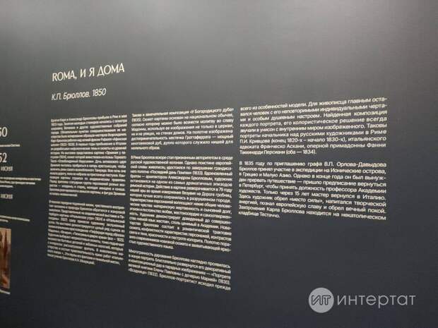 «Карл Брюллов. Рим – Мәскәү – Петербург» дип аталучы күргәзмә залының ишеген ачу белән бераз томсарак залга үттек. Зал халык белән шыгрым тулы булып чыкты, артта әле залга кертүче контролердай апа янына да чират сузылып киткән. Сурәтләр һәм ниндидер бер серле атмосфера, югары дәрәҗәдәге мәдәни рухиятле мохит патшалыгына эләккәндәй тойдым үземне. Күренеп тора, зыялы халык, тамашачылар җыелган: нәрсәдер буенча тыныч кына бәхәс куерталар, әкрен генә сөйләшәләр. Хатын-кызлар – модага туры килгән эшләпәләрдән һәм ир-атлар да галстуклардан.